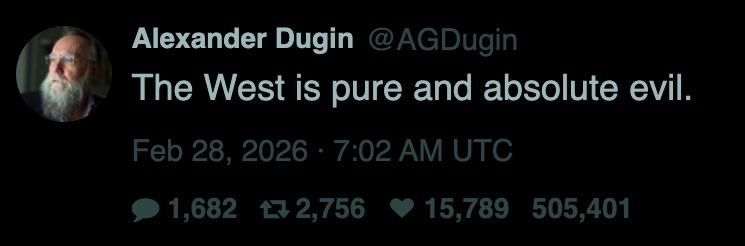 >>529443190I'm laffin', Dugin is seething, and you are too.