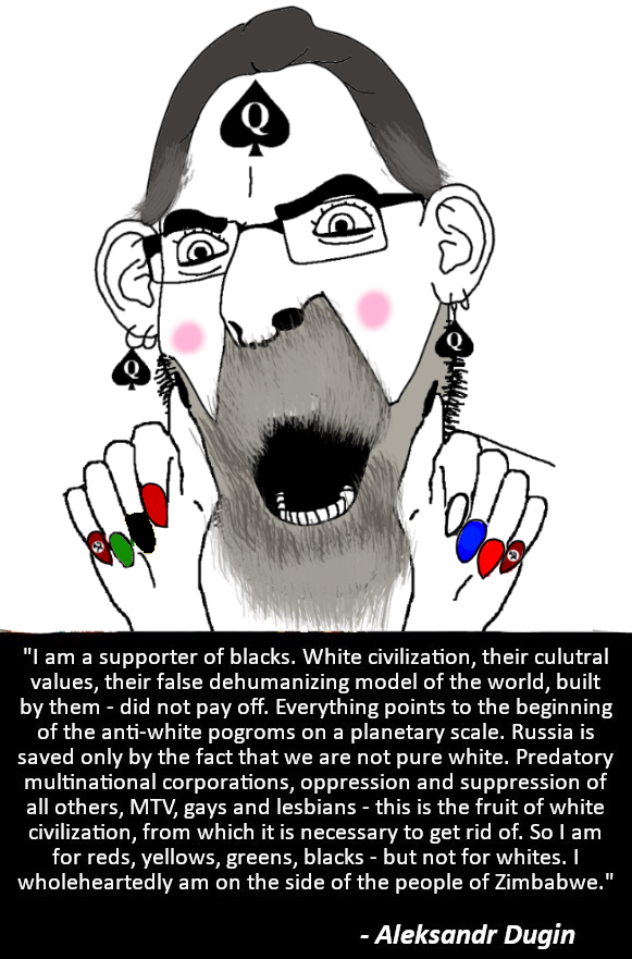 Putin (friend of anti-White Red Army residual elements, with-negroid-immigrants-and-mongoloid-soldiers invader of Europe, whore of anti-White Chabad, and financier of Tucker "muh white liberals are the problem" Carlson, George "love me some mudslimes" Galloway and Candance "dem no jews but khazarians" Owens)'s most representative philosopher Jewly trips you into demoralizing collective guilt
