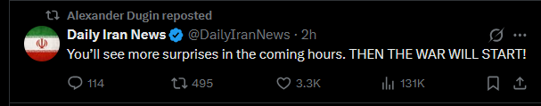 >You’ll see more surprises in the coming hours. THEN THE WAR WILL START!https://x.com/DailyIranNews/status/2027791856940290122