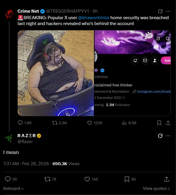 The makers of the chair respondhttps://x.com/Razer/status/2027768672727527726