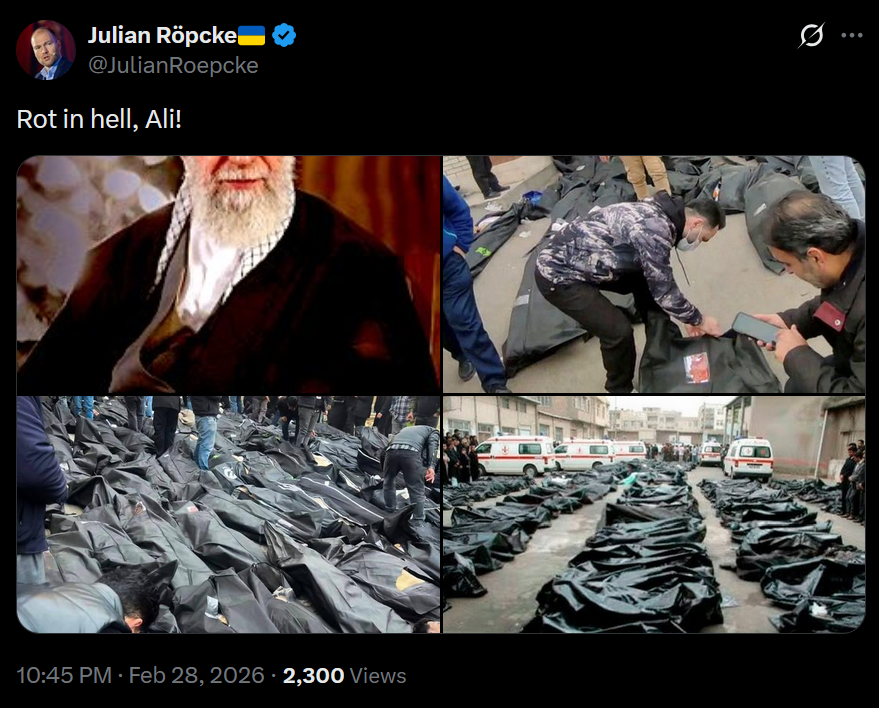 Why would Khamenei just sit in the compound though. It makes no sense. Either it's some kind of 5D chess where he thought it would be good for optics to die as a martyr, or he's not dead at all