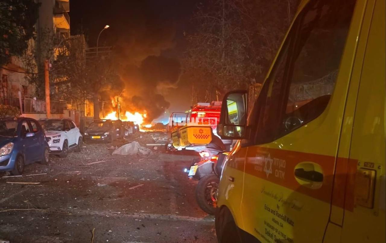 One of the impact sites in Tel Aviv; it is said the Iranian missile had a cluster warhead
