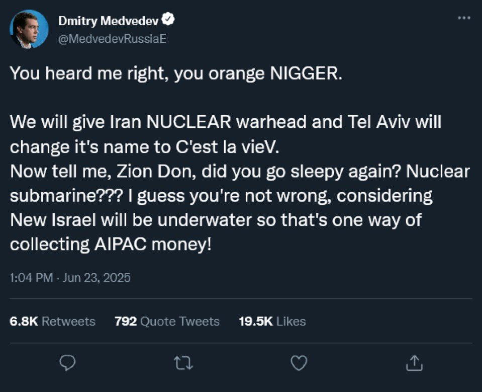 >>529447355If Trump actually wants a victory he'll do some big speech about how the strikes brought Iran to the negotiating table and then push Netanyahoo to sign an agreement and lift sanctions. This is my most optimistic outcome. Big win, EZ trade, take Iran away from China orbit. America winning hearts and minds. But its 2026 and the most Jewish president ever won't push back against his handlers so...