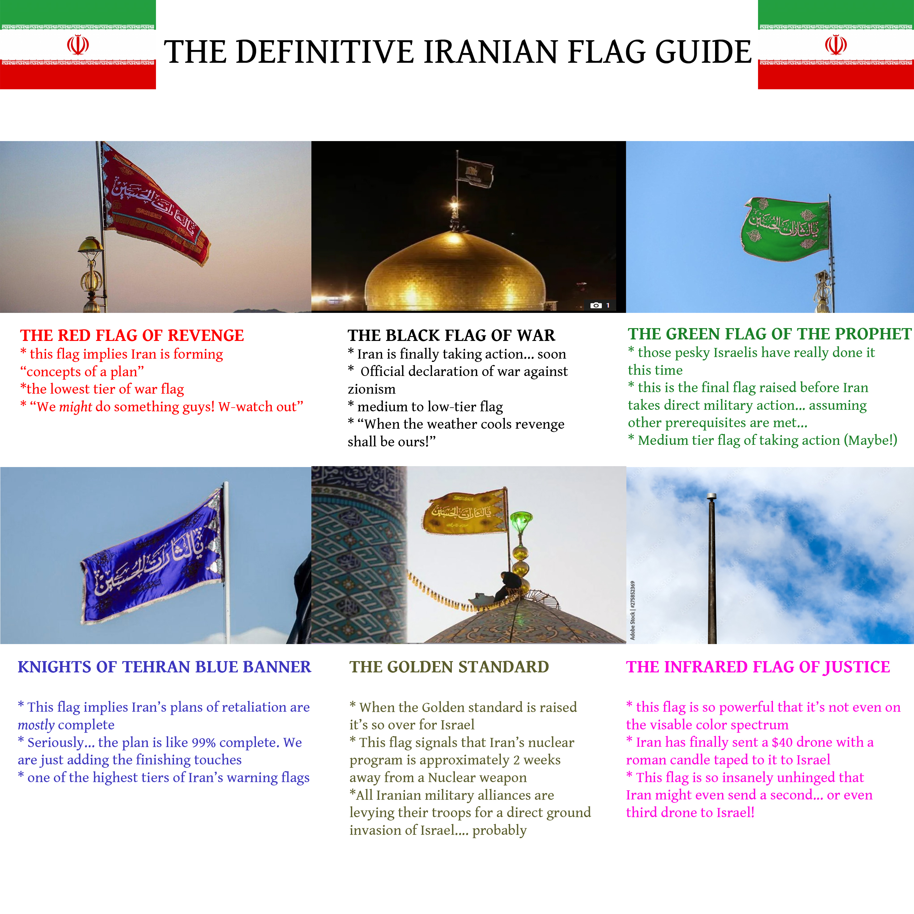 I remember all of the jokes about Iran and their flags. Many jokes, many posts. Well now Iran has taken great action for the world to see. I don't hear anymore jokes now, do you hear them joking?