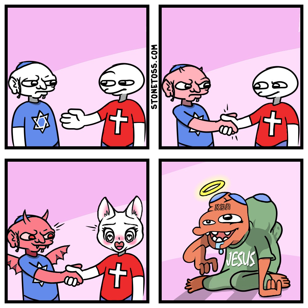 >>529444639The point is that Christians can't befriend Judaism because Judaism is poison.It's a rejection of 'Judeo-Christian'.