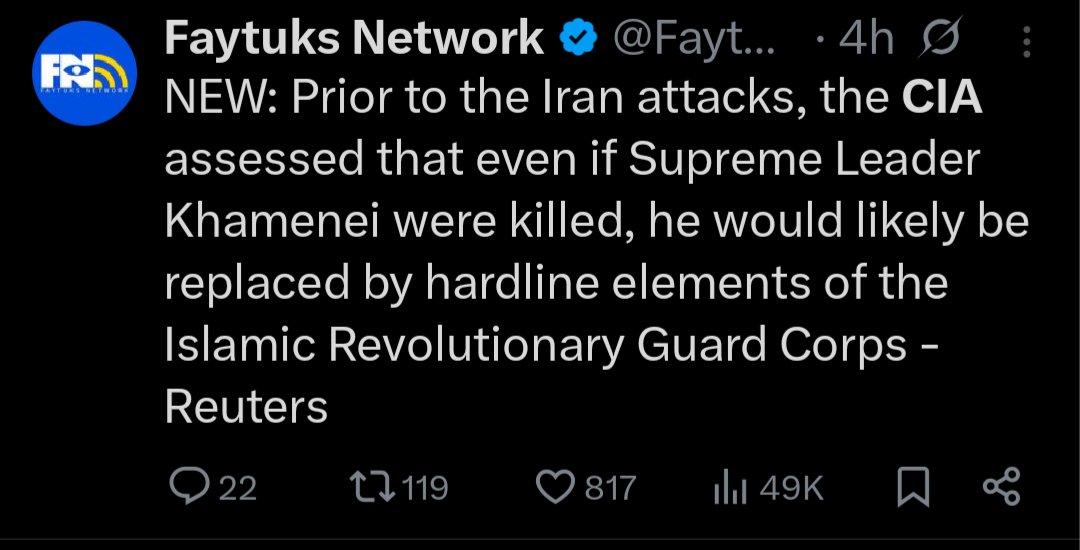 The Revolutionary Guard leadership that just got BTFO you mean?I don't think anyone under the age of 35 in Iran cares about taking their place