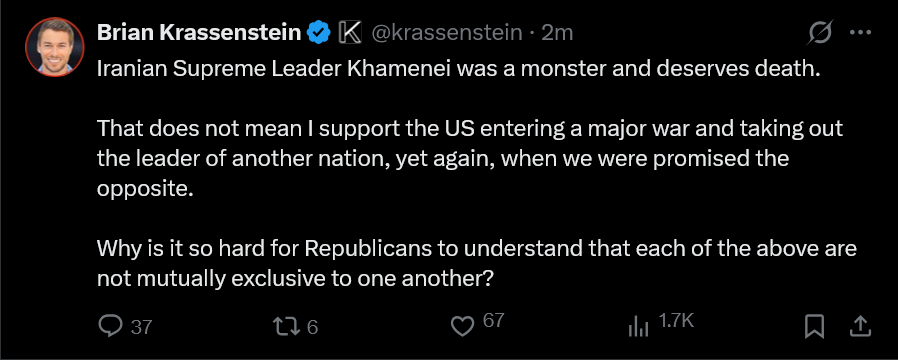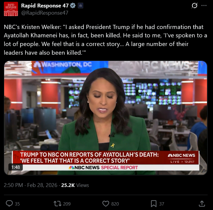 Im still waiting for seething "credible for this subject matter" (non kike, non muzzie, non fox news) sources saying that Khamenei is deadif it's true, then Trump just did the impossible for the 78th time, and once again the dying for israel has been canceled