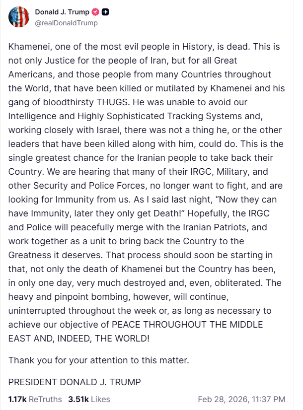 >khamenei dead but strikes to continue for a week or longerblood for the blood god