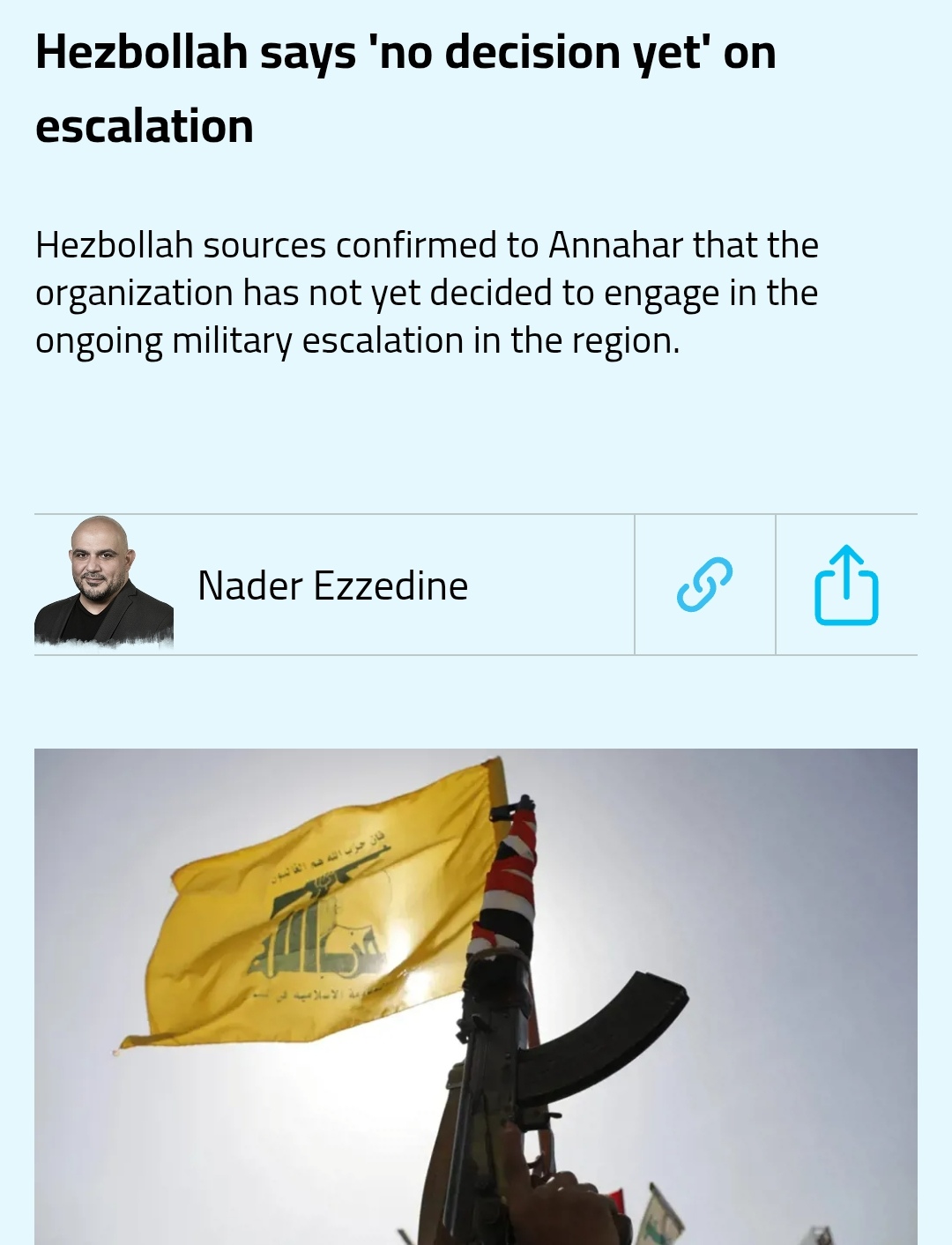 >>529449872There's no fun for us here>source in Hezbollah confirmed to Annahar that the organization "has not yet received any request from Tehran to intervene."Probably can't do anything anyway since the Jewhadists in Syria took over and cut the supply line from Iran.