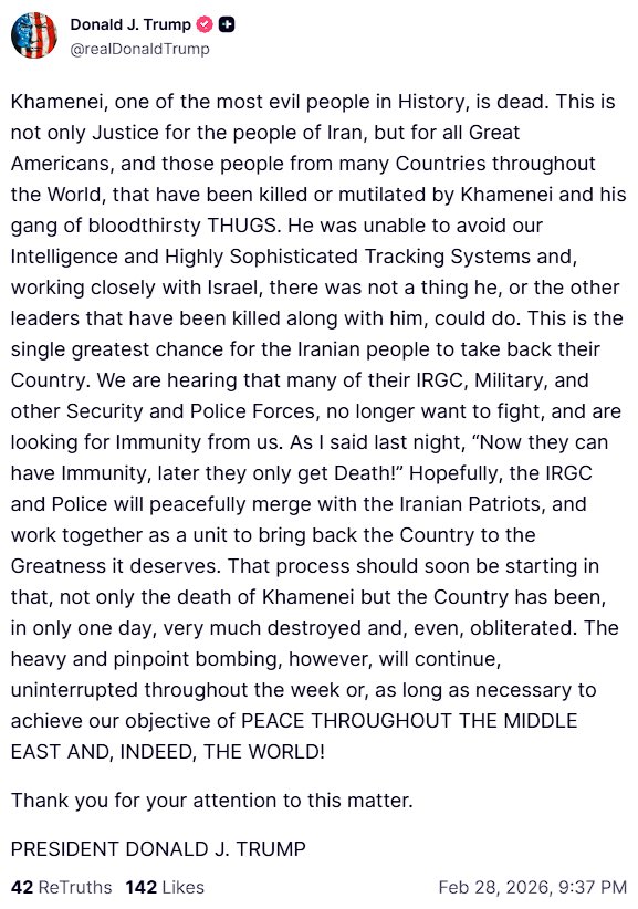 >>529452017>Trump Says Khamenei Is Deadsame guy was telling there is no Epstein Files