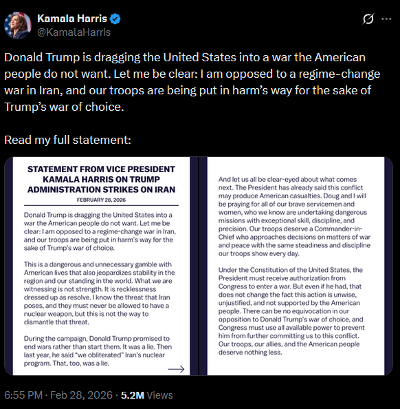 YOU LOVE TO SEE IThttps://x.com/KamalaHarris/status/2027820065886777456