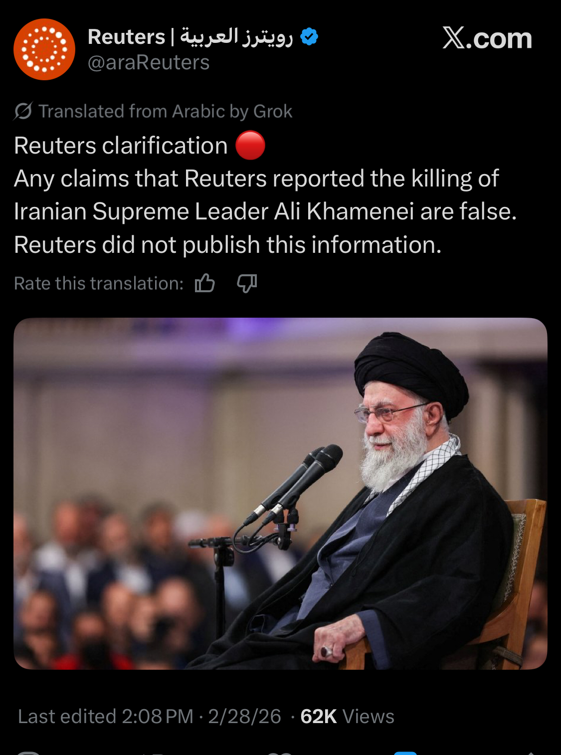 >Trump confirms Iran's Supreme Leader Ayatollah Ali Khamenei has been killed