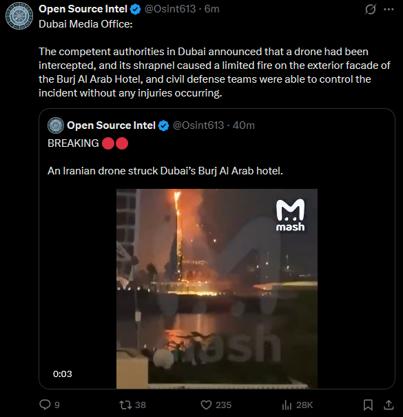 >Hits a couple hotels in the Gulf States with drones.