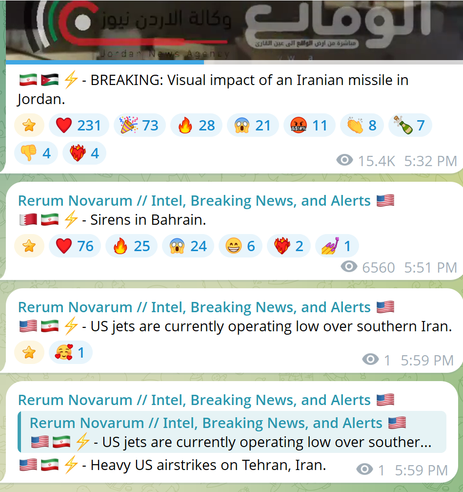 >Iran simultaneously fires ballistic missiles at: Saudi Arabia, UAE, Qatar, Kuwait, Bahrain, Jordan and Iraqi Kurdistan