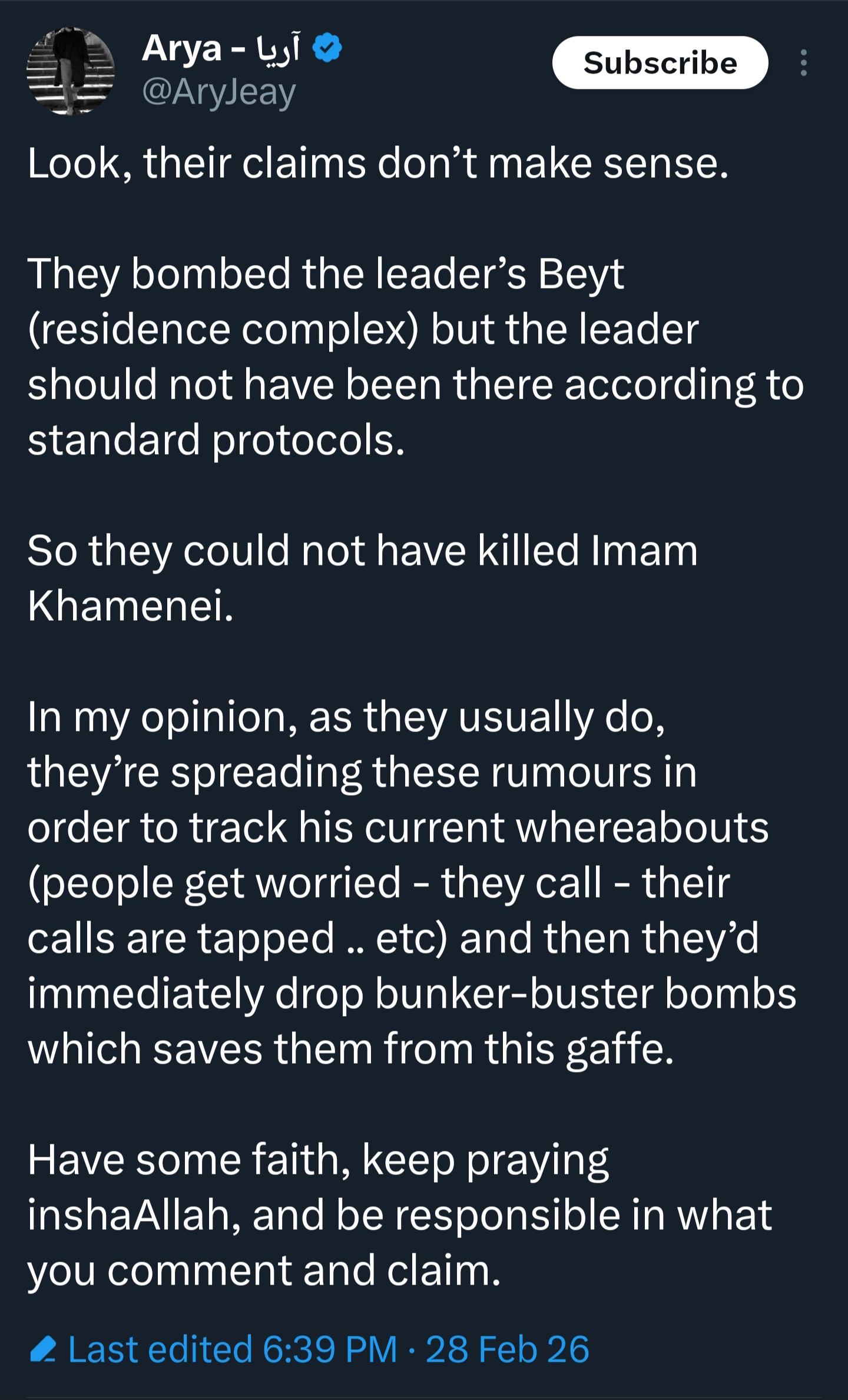 >Supreme leader & President's residence targeted, whereabouts unknown