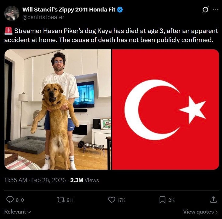 Kaya, Hasan's dog, might have died. They say its an accident, but looking at the timing, I'm not so sure.