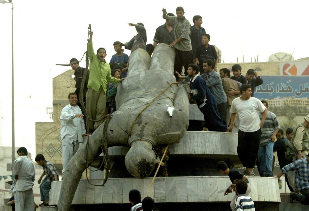 remember when the Americans pulled down the statue of Saddam in the middle of Baghdad and in spite of Americans shooting dead anything that vaguely looked like a human aged 7-99.... a crowd of young men spontaneously erupted from nowhere to smack the fallen Saddam statue with their sandals. ??!?!?!! OH SUCH JOYwe've been here before. except Saddam was more of a monarch than "muh great supreme leader". In Iran power is quite dispersed between the clerics, the supreme leader, the military, the Islamic Revolutionary Guard (seperate from the military) and the government (and this is before you get into local government structures or tribal rivalries)a retard just kicked a hornets nest.