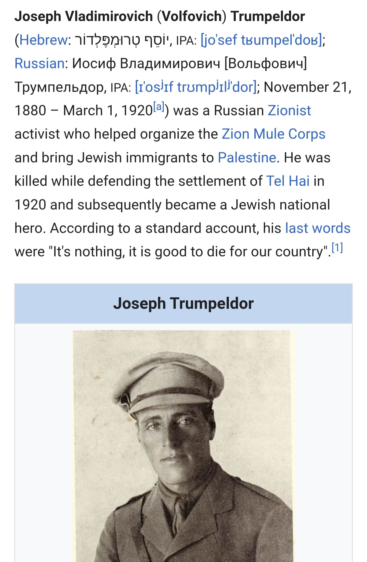 >>529463050Joseph is a jewish name to begin with. Vladimirovich and Trumpeldor is a Slavic/Yiddish hybring illustrating his Balto-Belarusso-Ukranian rootlessness.