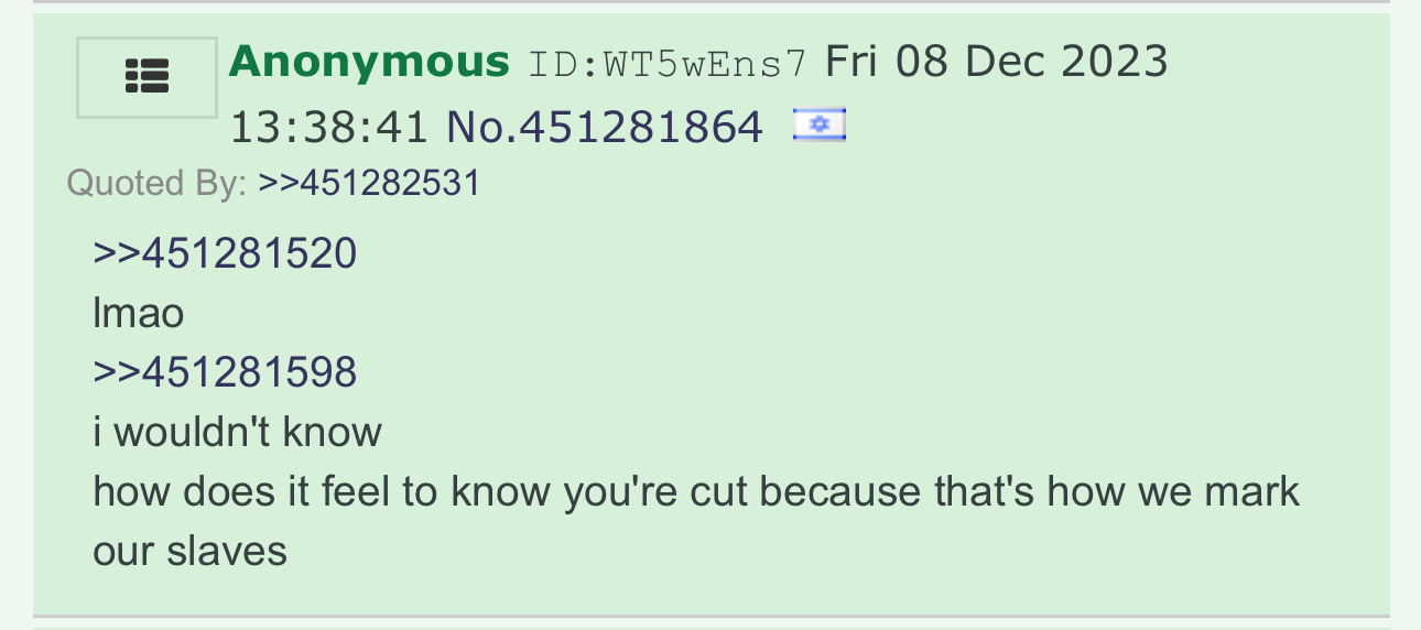 >>529468818maybe these are the final days and they prepared their final generation of goyims for the final battle by circumcision and mindfucking them.