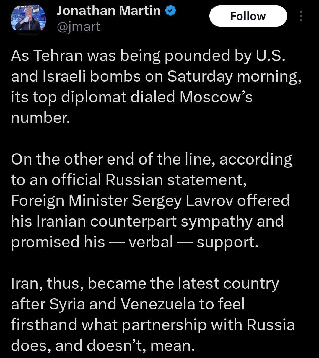 Foreign Minister Sergey Lavrov offered his Iranian counterpart sympathy and promised his verbal support.