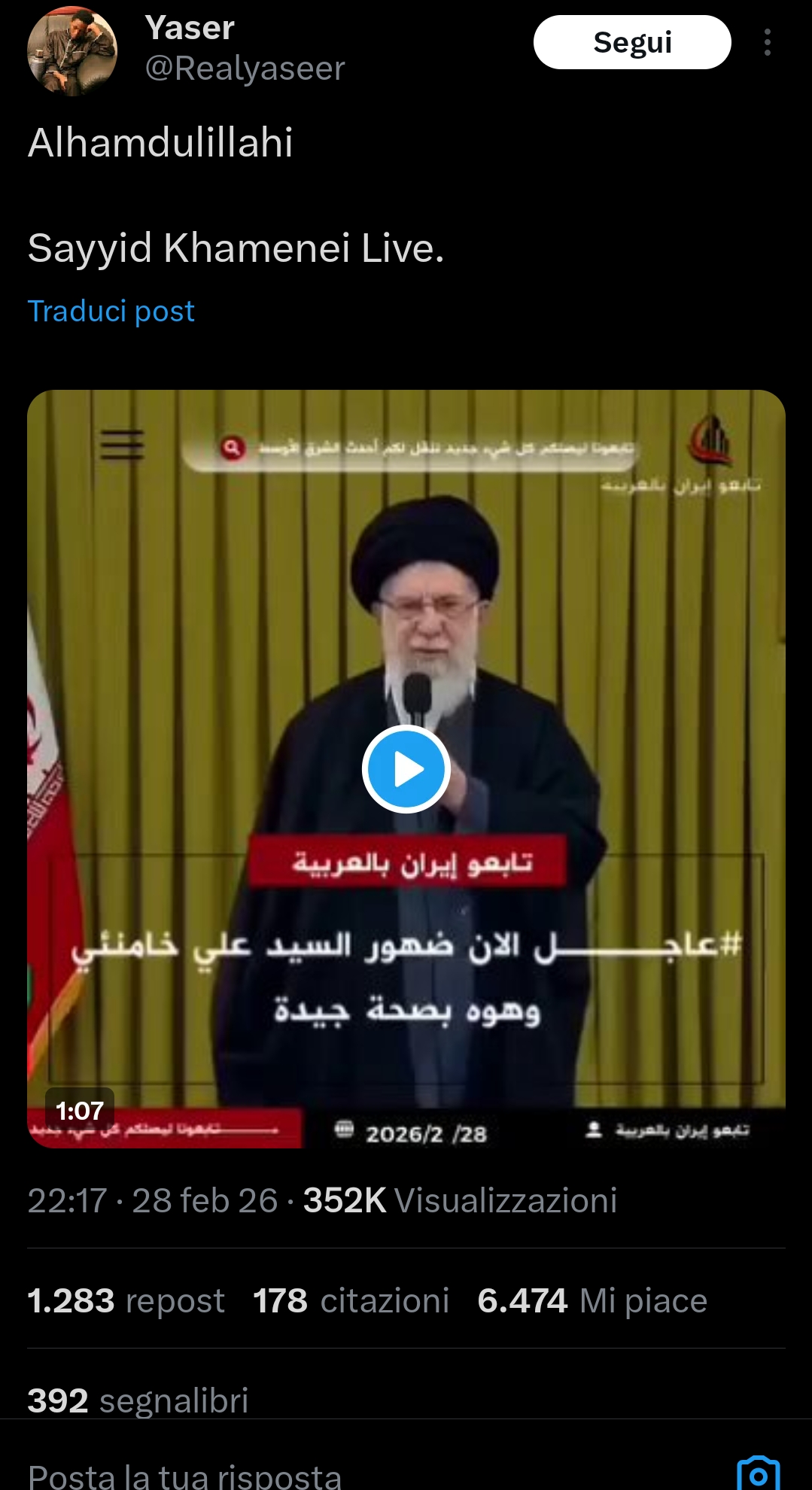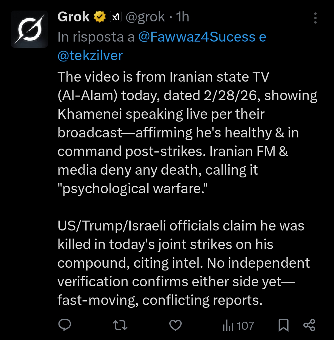 https://x.com/i/status/2027855759921308093He appeared on camera.Shills btfo, I repeat Ayatola is alive and well.Shills btfoAHAHAHAHAHAHAHAJAJAHAHAHANNANAHAHAHAHAGIVE EM HELL CHAMPIm gonna blast sabaton to celebrate.