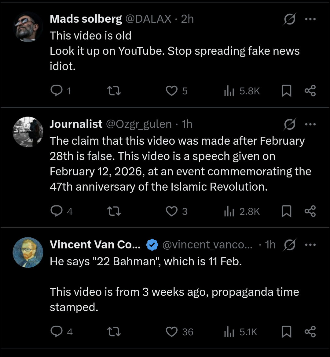 >>529471629Fake news.In the video you linked he opens by saying "yesterday, 22 of Bahman (month)..." but right now is not Bahman, it's 9 of Esfand.