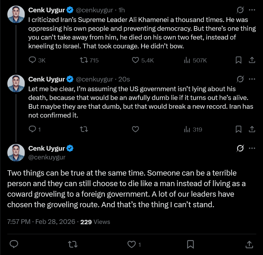 >>529478913Fat Unclehttps://x.com/cenkuygur/status/2027906188797460623?s=20