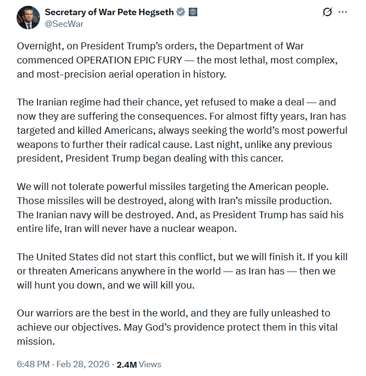 https://x.com/SecWar/status/2027893692112248981