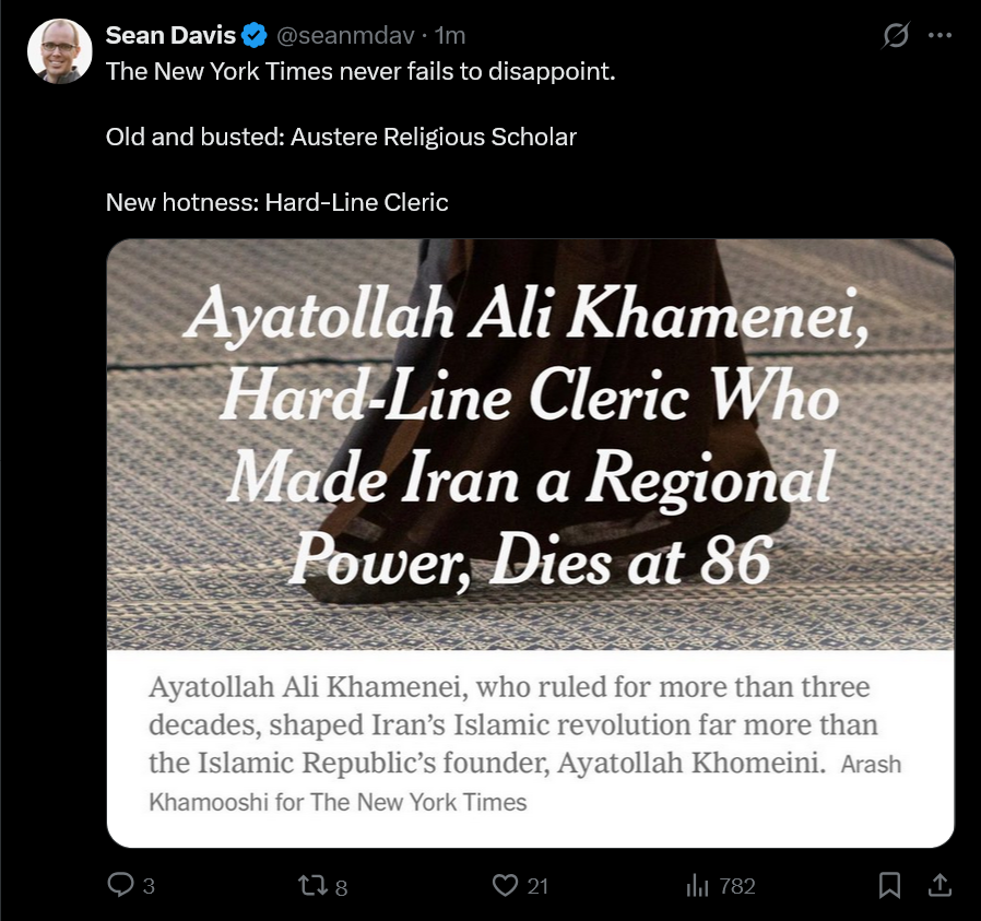 > Iranian state media has confirmed the death of Ayatollah Ali Khamenei I was holding out hope, bros.But if they said it was so, it is so.May Allah have mercy on his soul