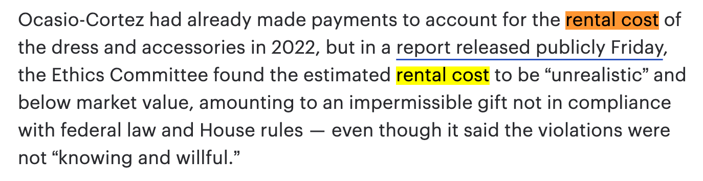 >>529488440Mostly true.AOC do however accept "personal gifts", not to be registred or declared.You know - like the ol> it's not taxable income, it's a gift!online thots, until they found out.So far she's only been caught when she sported the $$18K+ "eat the rich" dress which someone else paid for.But that one is enough to show that she's playing the >"it's not a political donation, it's a personal gift - and I don't need to declare that"game. So if she ever becomes a serious presidental candidate, all the opposition has to do, is to dig into that