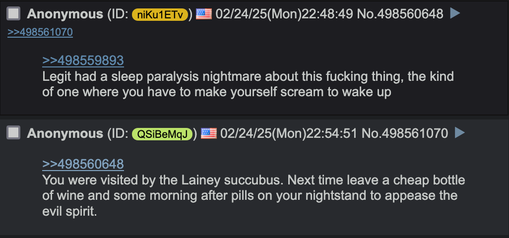 >>529493659>what will happen when there is no more lainey posting?never>a meme doesn’t die unless it’s forgotten>mm
