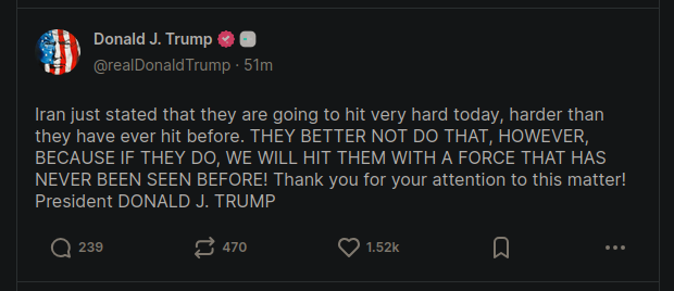 >>529493352I think he wasn't expecting the attacks on other gulf states. MbS and the UAE guy are probably calling him asking wtf. Dubai airport has been hit... not a good look. The US don't have protective cover of all these gulf states so they are basically sitting ducks and Iran is going to keep hitting them until the US backs off so, yeah, that's kind of the problem. Not sure what Trump will do here. He might have to back off after a bit and rethink.