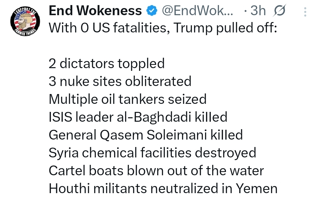 "No new wars" doesn't mean "no new fatalities" and it's a lie that there were no US fatalities.There's no point in arguing though. We'll have 20 years of Democrat rule for me to say I told you so.