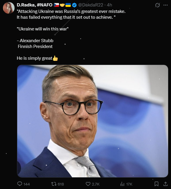 >>529505560If a russian or brown says something its just cope and opposite of realityDid Russia take some more fields and villages?Another great bombing iskander zircon oreshnik soon will be game changer and finally dear western partners will invite Putin to meetings