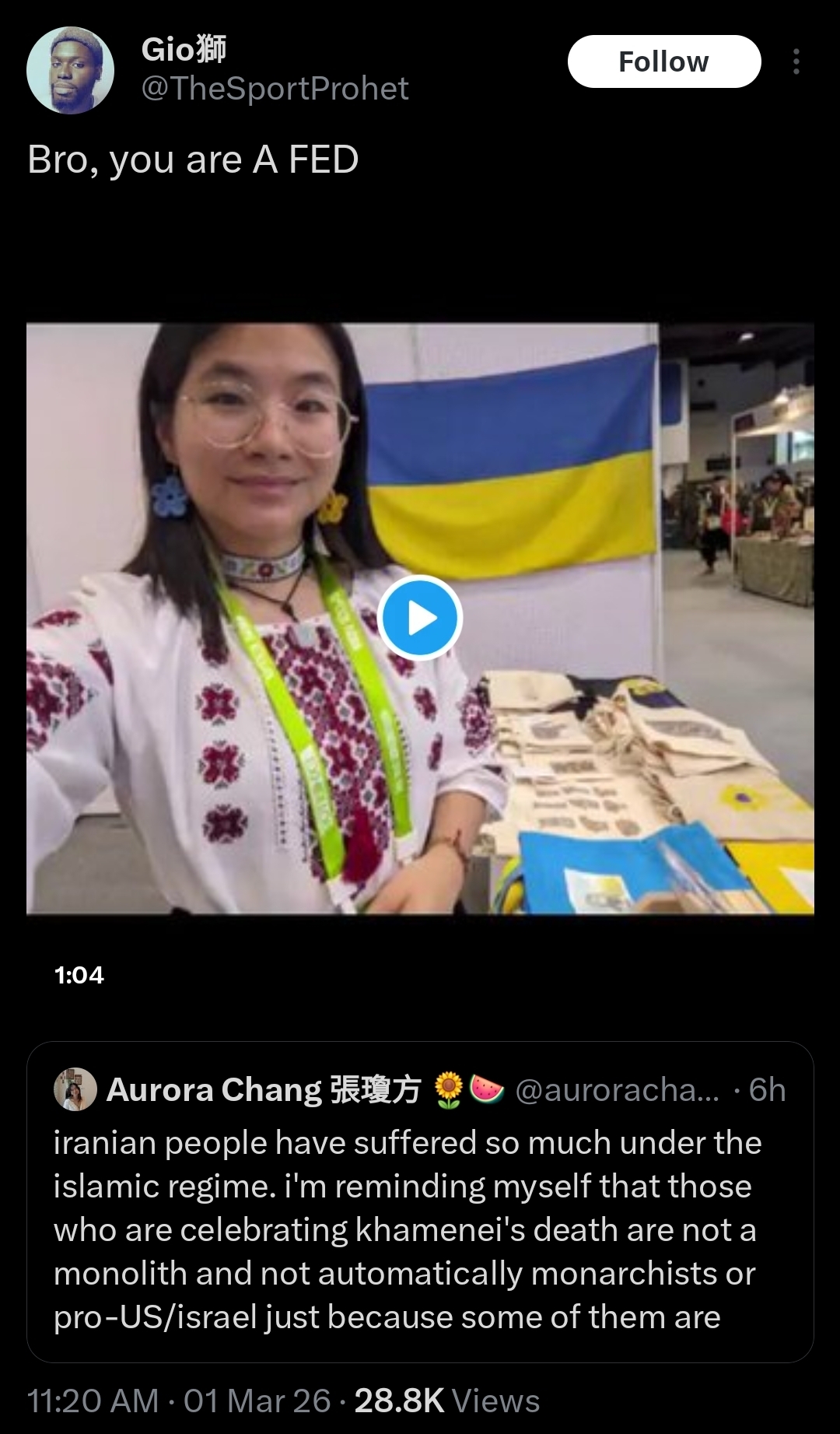 >>529505352>chang >in ukrainian clothes >supports strikes in iran >gets exposed as a "fed" by a negro with italian name and chinese symbols in his nicknamewhat a timeline
