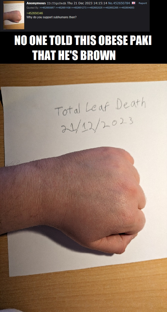 >>529505513Lot of shit talking from a nigger who cant even say faggot in public without getting thrown in prison. UK is a sick joke and you are a nigger.