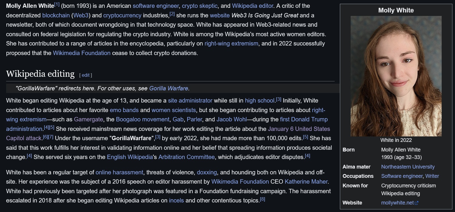>>529517749There are people whose entire lives and "careers" seem to be nothing but pushing leftist ideals on Wikipedia and the internet in general. They're very likely paid by PACs, NGOs, and shit like Sixteen Thirty Fund/Chorus Creator Incubator Program.