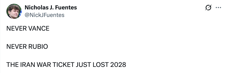 in typical fashion he is over reacting like a woman, there wont be boots on the ground, and if this turns out like they want it, the people of iran will overthrow the regime themselves.by 2028 there wont be a war to talk about