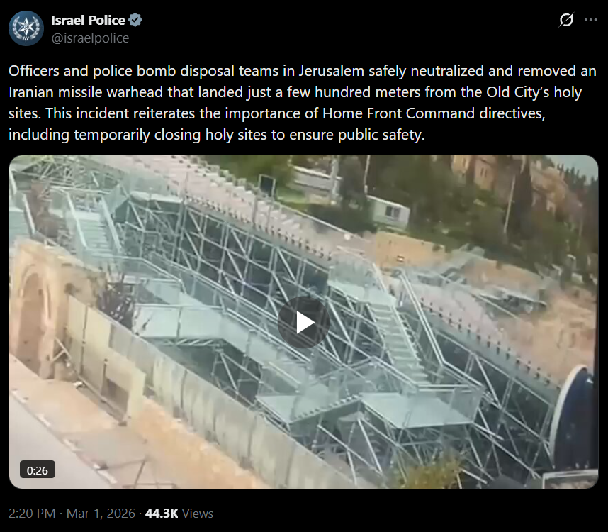 Iranian missile "allegedly" landed a few meters near Al-Aqsa Mosque today.Rupture incoming