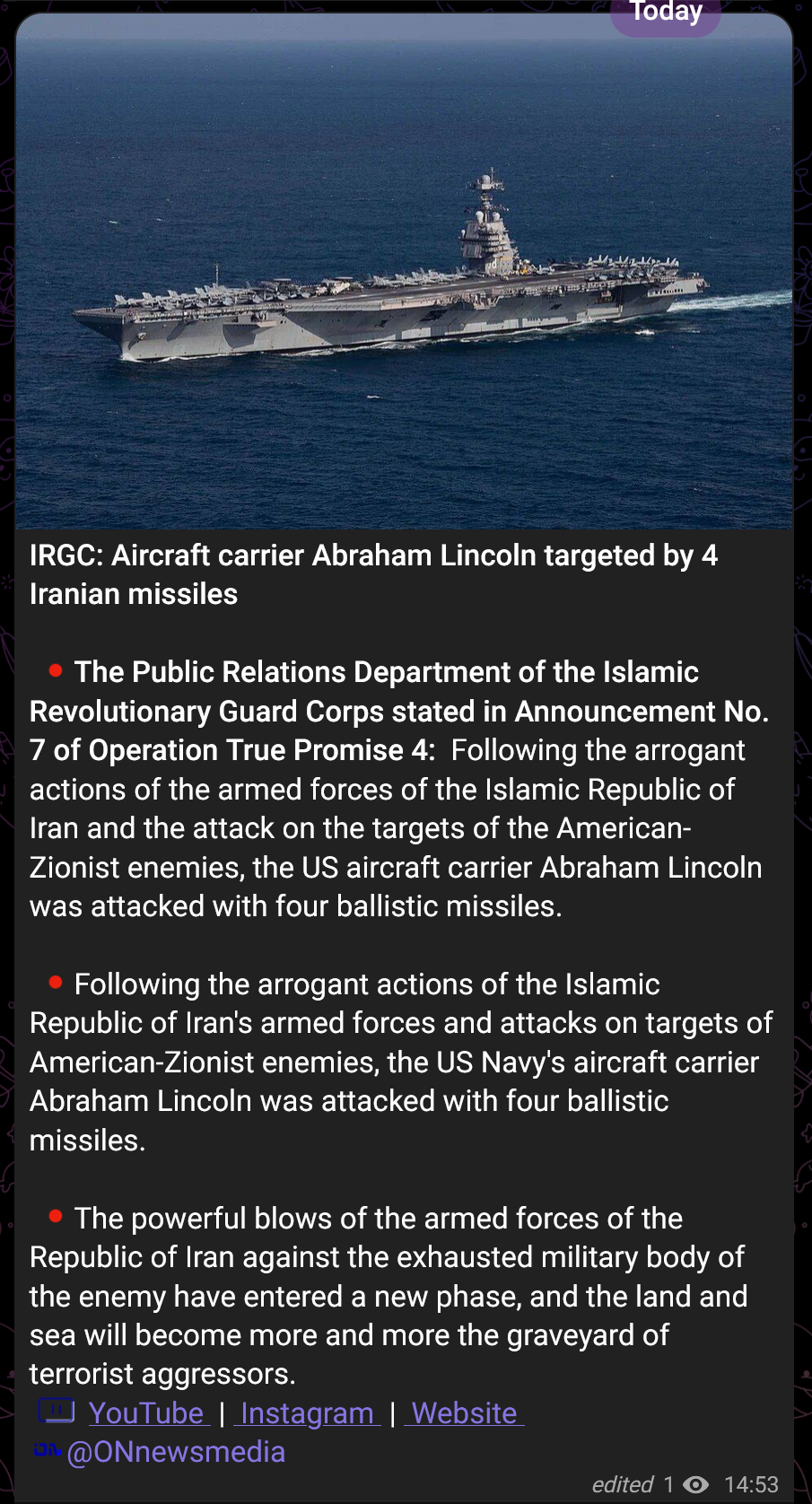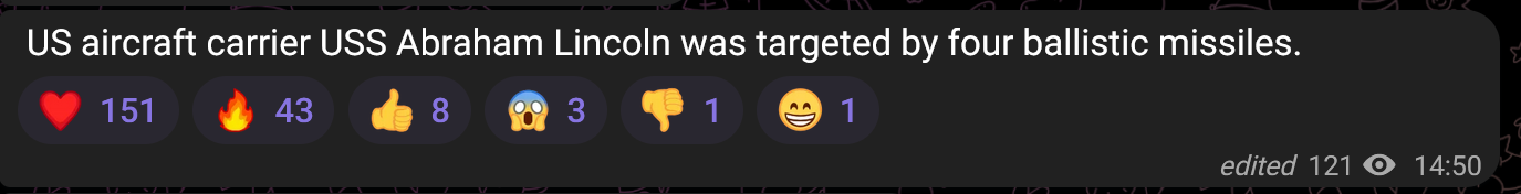 early reports of US carriers being targeted by ballistic missiles