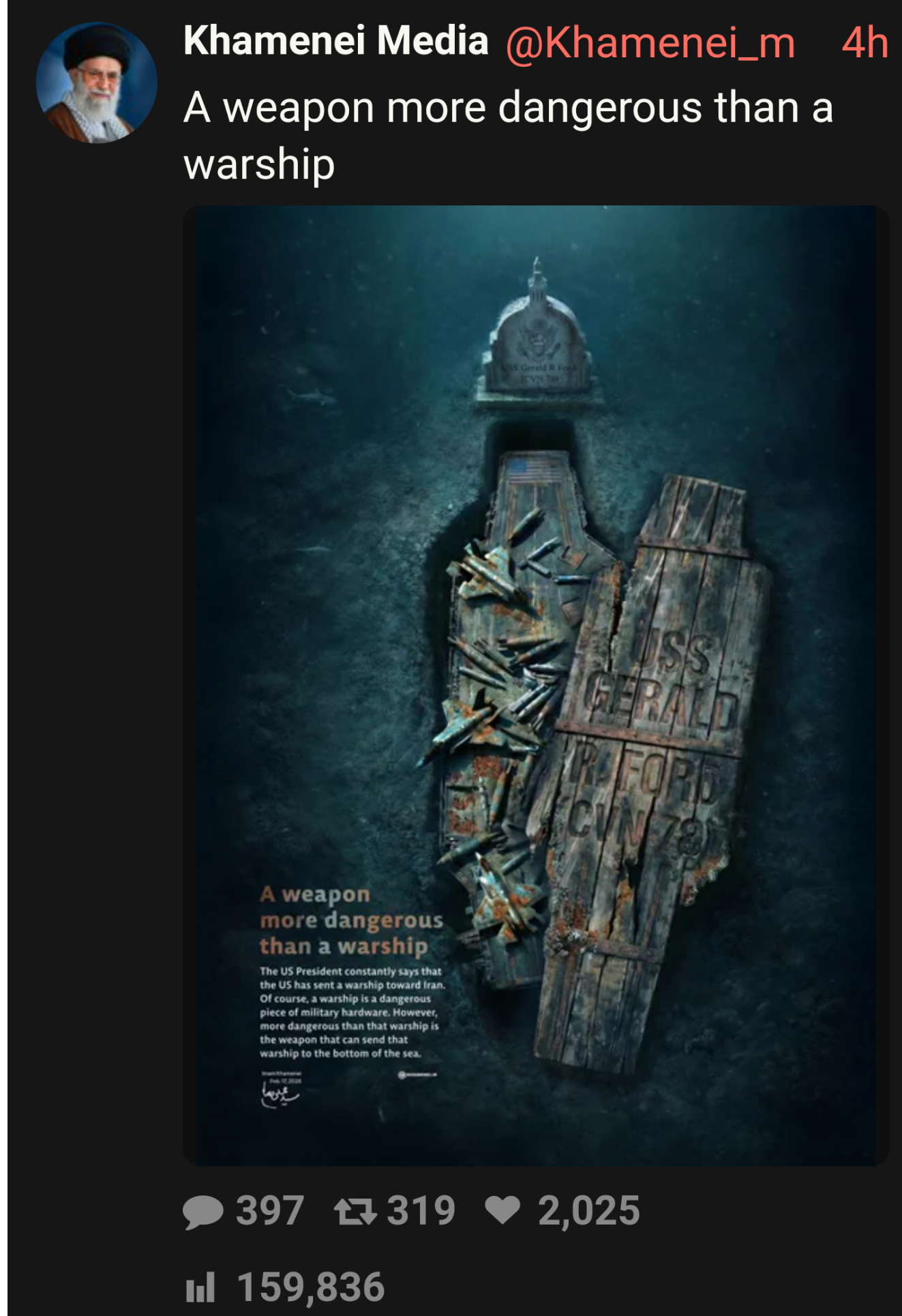 >>529526138They'd be ICBMed if they did that. You have to learn to translate machismo/posturing. This is Iran rallying its base. Truth not required.