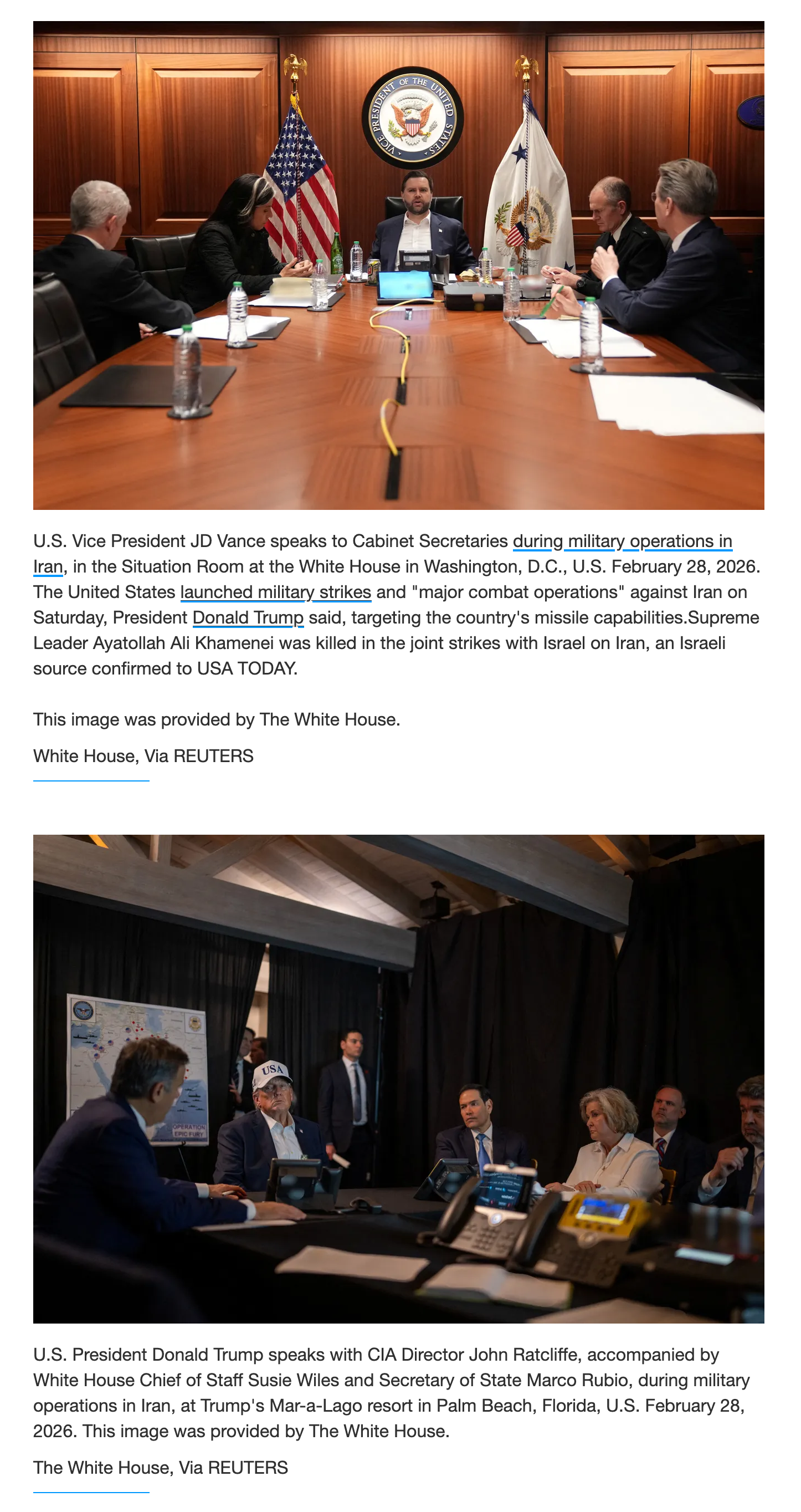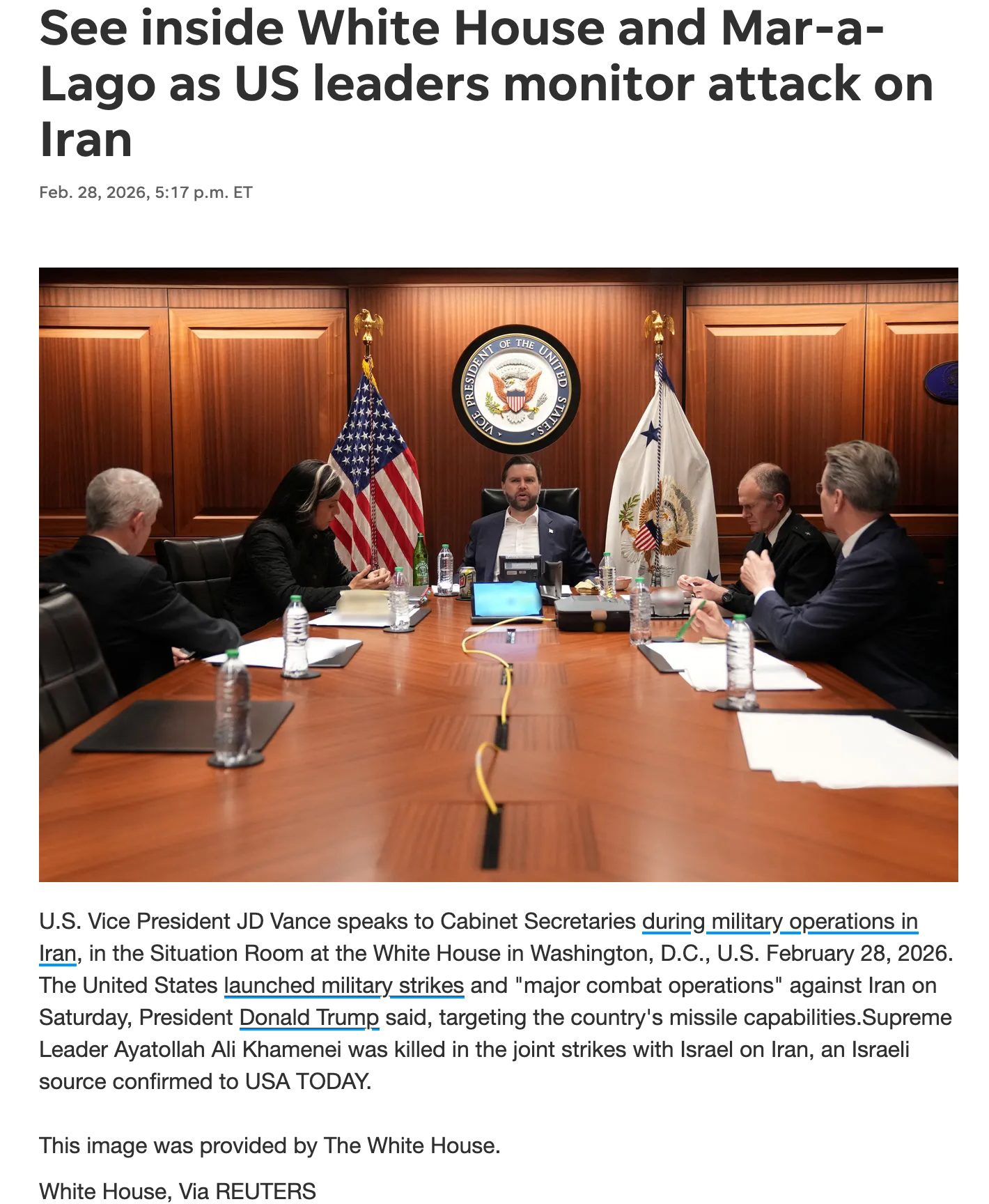 vance has still not made a statement in support of President Trump and the strikes on Iran. Sources were reporting that the ones against the strike in Iran were vance and Gabbard. That would make sense as to why Trump made them sit in the lame small weak situation room they don’t want vance leaking to the Qataris