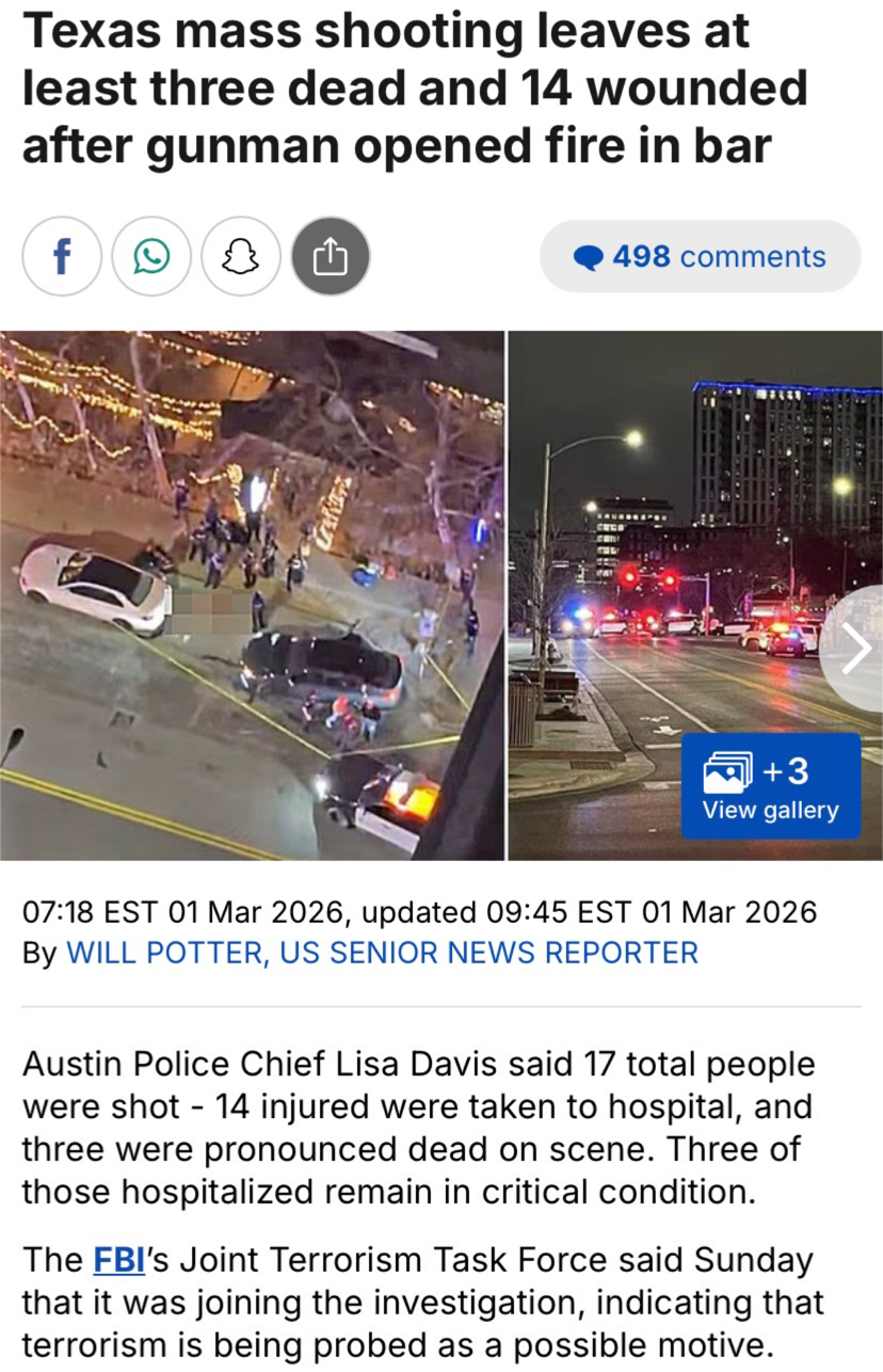 FBI probing terrorism as motive for Texas bar mass shooting