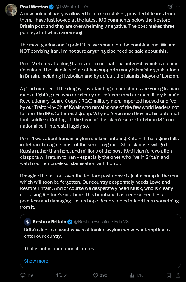 >>529534582> Weston assumes Moslems will still be in the UK when Lowe takes the throneZack Polanski has a better chance of being PM than Rupert Lowe lmao