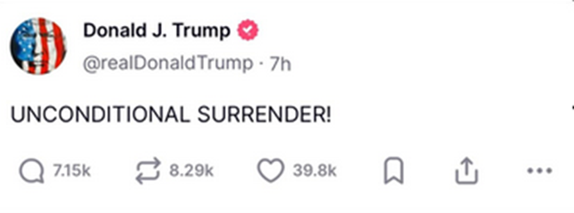 >>529552597Day 262 of the 12 day War!And the UNCONDITIONAL SURRENDER of Iran!Take that Putler!