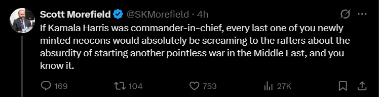 Baited by whomst? The Iranian government baited Trump into blowing up the Ayatollah? Why would they do that?