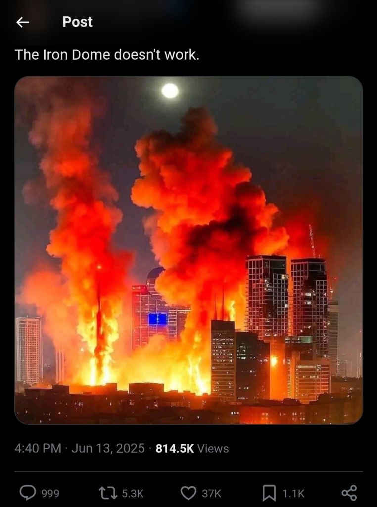 >any missile hits Israel>1 billion different camera angles and photos of the incident>Iran has the head of its government bombed in to oblivion>not a single picture of this I don’t know why anybody would ever trust Iranian numbers. They are under 0 scrutiny from having a populace that owns smartphones.