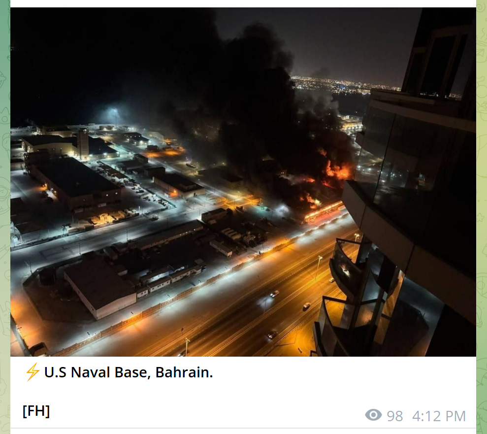 US base in Bahrain looks pretty toasty.Will post a vid if no1 else does in a few mins.