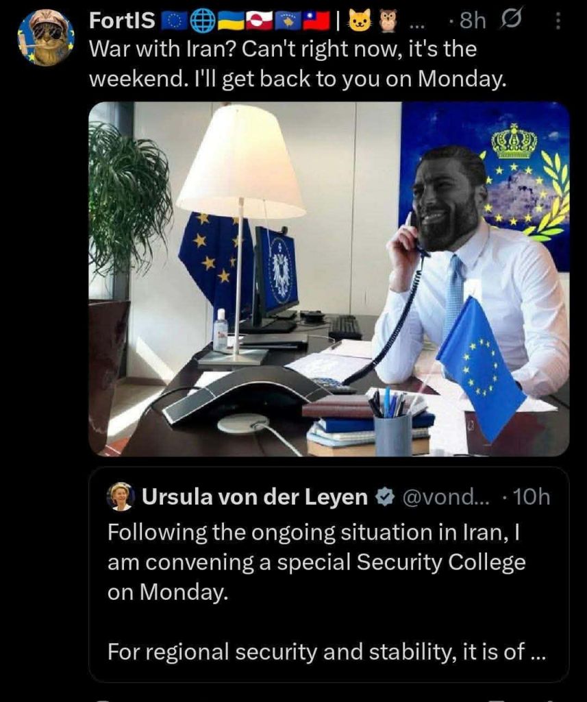 Dont get me wrong. I dont want any white person to die for israel. But it is also a reality that the EU is nothing anymore and has no more weight on the world stage.