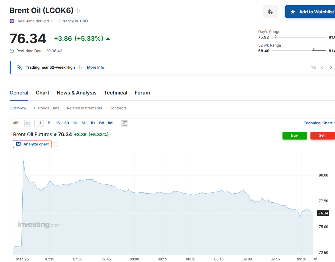 The price goes up with how likely It is Iran will bomb you.